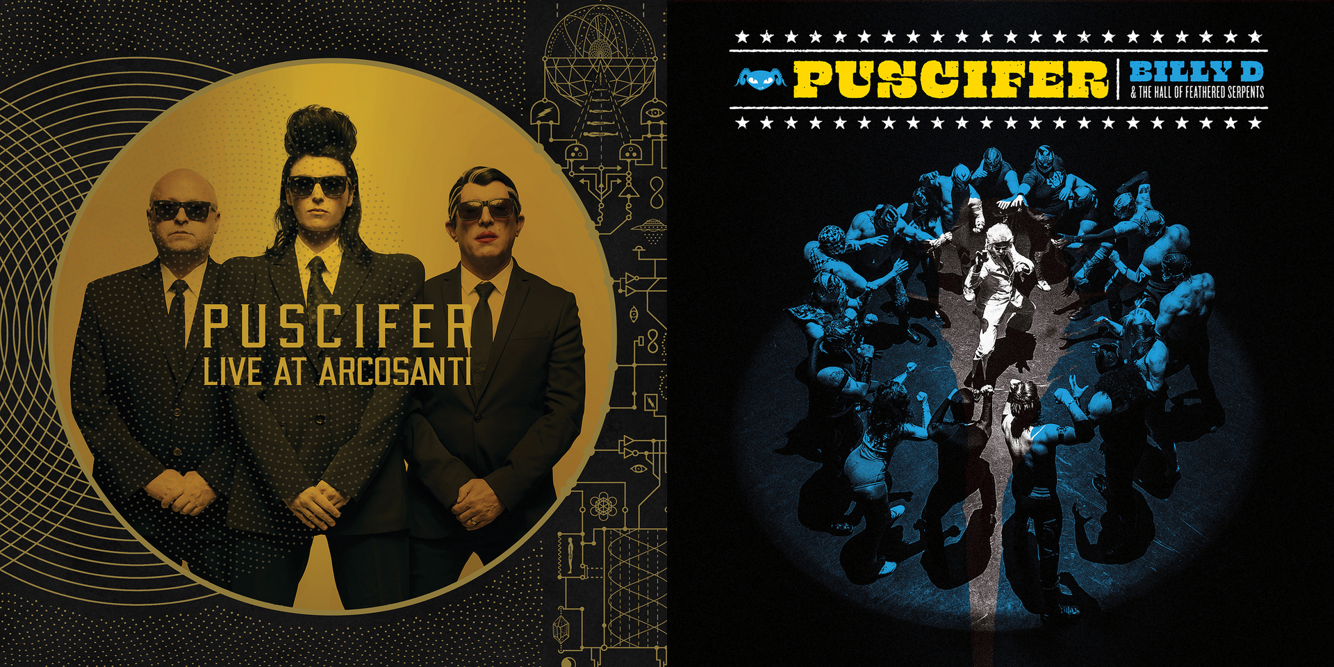 Nov. 12, 2021, Jerome, Ariz. – Puscifer, whose pair of livestream events: “Existential Reckoning: Live at Arcosanti” (https://puscifer.lnk.to/LiveAtArcosanti) and “Billy D and The Hall of Feathered Serpents Featuring Money $hot” (https://linktr.ee/puscifer), brought the band’s unique mixture of concert and theatrical production to audiences worldwide, release both the soundtracks and digital versions of the films today via Puscifer Entertainment and Alchemy Recordings/BMG. Released in October 2020, “Existential Reckoning: Live at Arcosanti,” is a pioneer of COVID-era livestream era, breaking viewership records while showcasing the then newly released album amidst the bedazzling backdrop of Arcosanti, a location Architectural Digest described as a “utopian metropolis in the Arizona desert” that “looks like the sublime set of a big-budget sci-fi movie.” “Billy D and The Hall of Feathered Serpents Featuring Money $hot” followed in April, with the prequel tracking Billy D as he trudged through what has been referred to as the Bermuda Triangle of the Southwest, ultimately landing at Los Angeles’ historic Mayan Theater. The elaborate cultural landmark, with its jaw-dropping Mayan calendar infused chandelier and a lobby dedicated to the bird-meets-reptilian deity Quetzalcoatl, served as an intoxicating backdrop to the Luchador-infused performance. Physical versions of both films and soundtracks will be announced soon. | ||