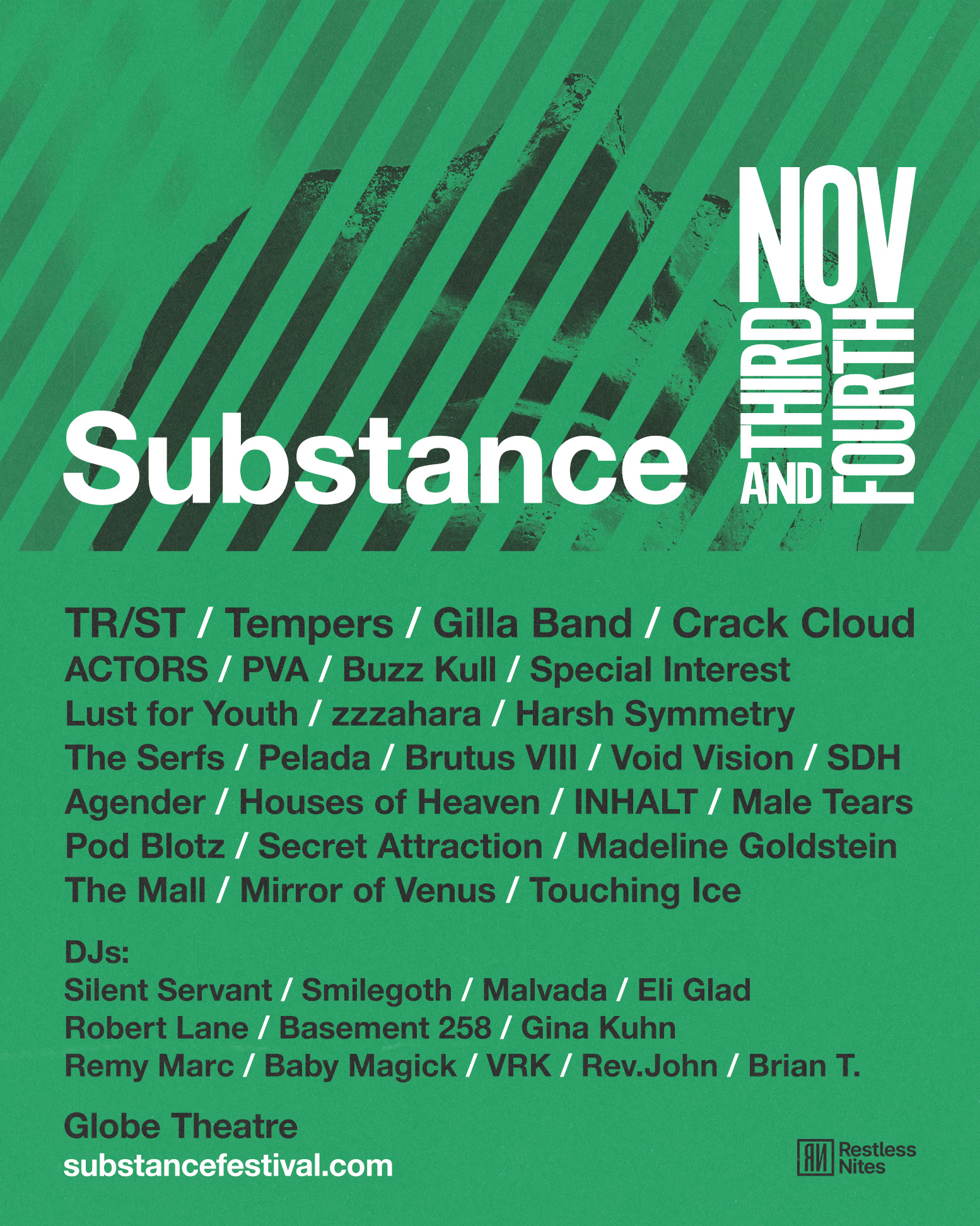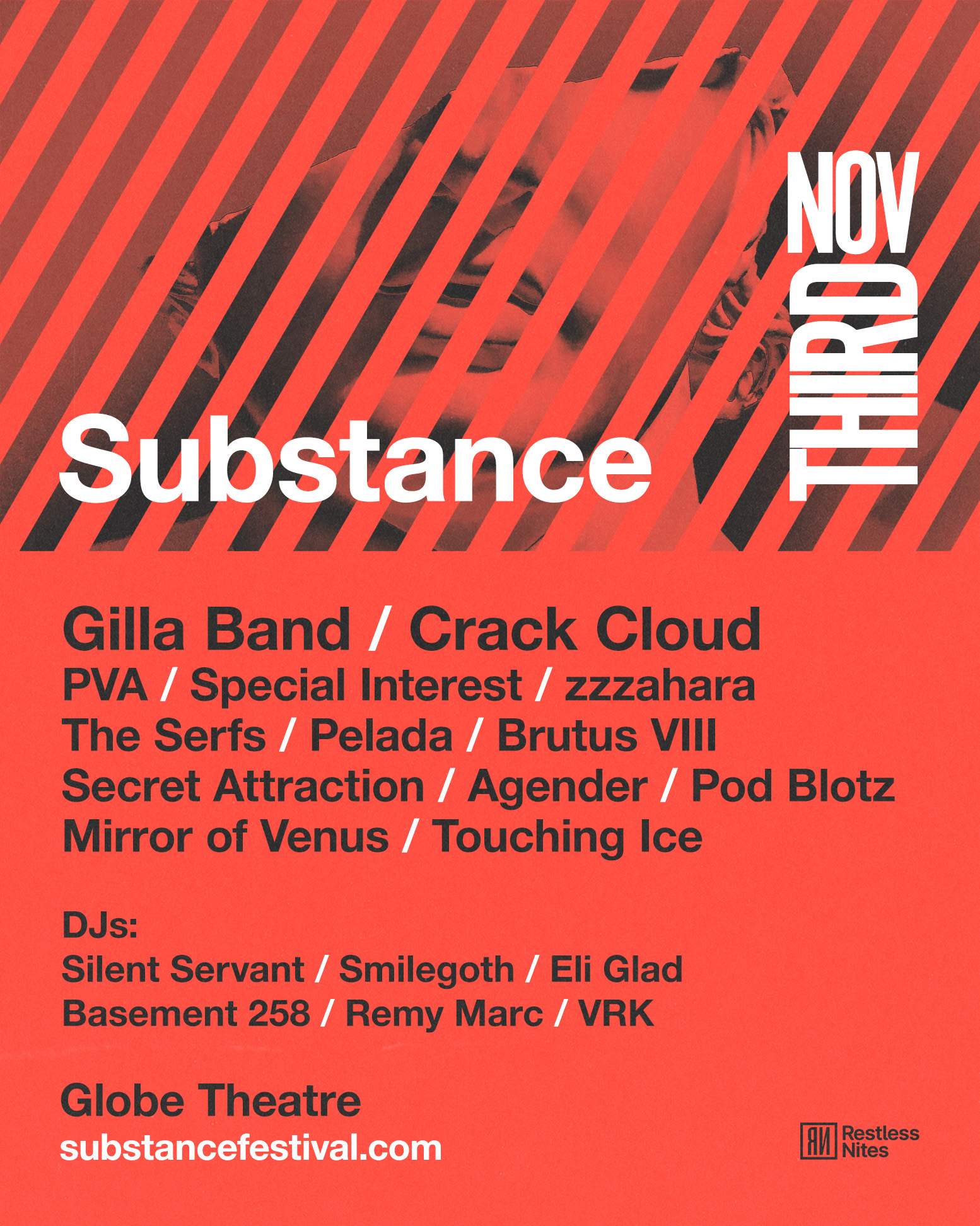 Restless Nites presents the Substance 2023 festival lineup with TR/ST, Tempers, Gilla Band, Crack Cloud and more