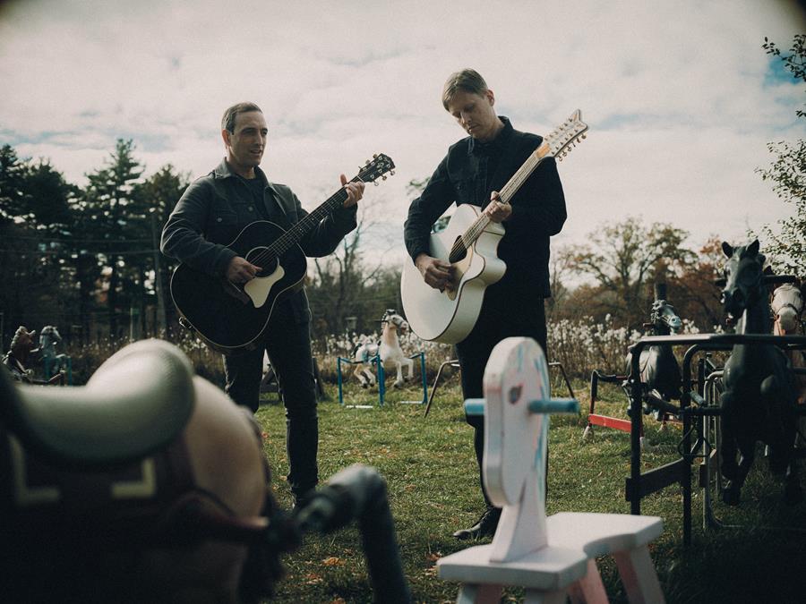 Today, New Idea Society share the album's first single and music video for “Dancing Horse." Law comments: "Part of 'Dancing Horse' first appeared all the way back in 2007 and it took a lot of forms over the years that never quite worked. Then out of nowhere it arrived somehow fully re-formed and totally realized into one of my favorite songs I've ever been a part of. The original idea started on an August night in Budapest and was tied together one August morning in 2024 back in Massachusetts. It was one of those moments where Steve reached deep and found something that had been floating around in another universe and brought it to ours." Brodsky continues: "I remember listening to Mike’s original demo for 'Dancing Horse'— it was a shoegaze thing with one lyric that shone brightly through the sonic haze: 'There’s a dancing horse on my roof.' My fiancé had just hung a horseshoe above the front door of our home. A native Texan, she explained that a horseshoe points up to catch luck and then flips over to rain it down… suddenly, that one line from the demo spawned a whole other thing in my head. I’m grateful that Mike was receptive to me taking a brilliant seed of his imagination and going off to the races with it."